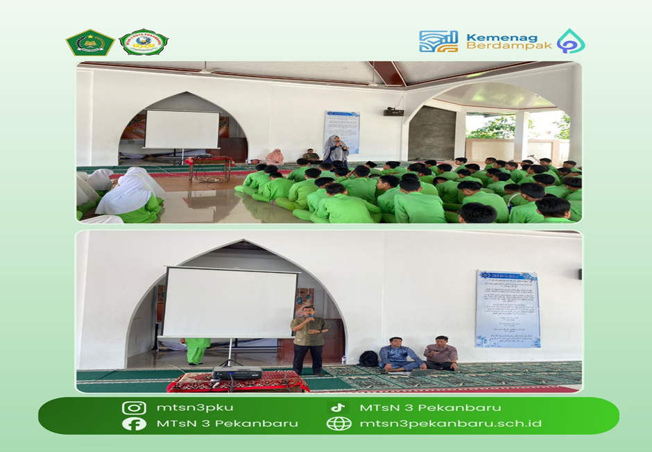 (HUMAS) – MAN 1 Pekanbaru mengadakan sosialisasi tentang PPDB (Penelusuran Peserta Didik baru ) Tahun Ajaran 2026/2027 di MTsN 3 Kota Pekanbaru, kegiatan dilaksanakan di Masjid Baitul Ikhlas yang diikuti oleh seluruh siswa kelas IX, dimulai pada pukul 09.00 – Selesai pada hari Jum’at (12/12/2025).