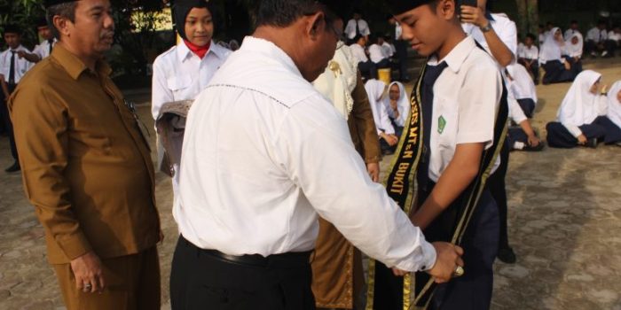 Pelantikan atau pengukuhan dala acara ini, bukanlah sebuah acara seremonial belaka, akan tetapi dijadikan sebuah balutan sumpah yang menjadikan diri kalian sebagai pengurus OSIS dan ROHIS yang bertanggung jawab, menjalankan organisasi tidaklah mudah, kalian harus tekun belajar dan proaktif dalam berbagai kegiatan, bekerjalah sebagai pengurus OSIS dan ROHIS baru yang kuat dan mencintai Ilmu, berkoordinasi dengan baik. Demikian sambutan dari Bapak Kabid Penmad Provinsi Riau Drs. H. Asmuni, MA.